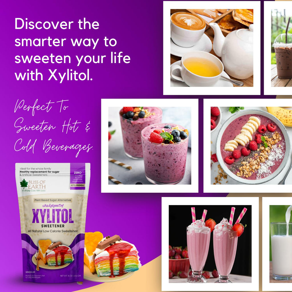 Bliss of Earth Xylitol Sweetener 1 lb (454g), 100% Natural 1:1 Sugar Substitute, Zero Added Sugar, Diabetic & Keto Friendly, Low GI Sweetener for Baking, Tea & Coffee