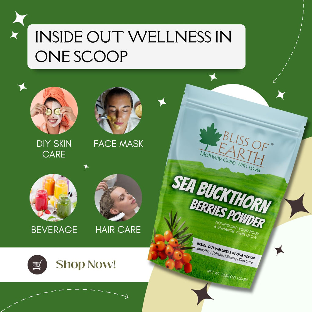 - Resealable & Travel Friendly The pack is lightweight, resealable, and easy to carry. Whether at work, home, or during travel, just scoop and mix. A pinch of see buckthorn berry blends well with juices or oats. Versatile for users who include seabuckthorn powder in small portions daily.