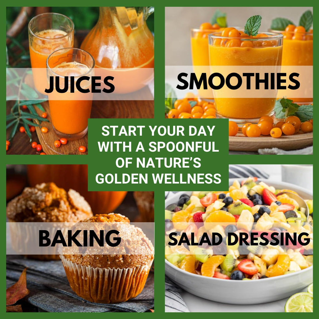 1. Easy Daily Use This Seabuckthorn Berry Powder is made from dried buckthorn berries gathered in high-altitude regions. It blends smoothly into drinks like tea, water, or smoothies. A spoonful in your morning routine mixes well with liquids or soft foods such as yogurt or oatmeal. 2. Single-Ingredient Simplicity Made from pure sea buckthorn berries, this powder includes no fillers or artificial content. It can be combined with other ingredients like seabuck thorn to enhance dishes or drinks without altering their overall texture or flavor. 3. Quick to Mix and Use No heating or preparation is needed—just scoop and stir. When combined with mild foods, seabuck thorn berry adds depth. It also works well with dry mixes, and ingredients like sea buck thorn berry pair nicely in various meal options. 4. Flexible for All Kitchens Stored in a resealable pouch, this powder fits both compact spaces and regular pantry shelves. It complements combinations like sea berry powder, and original sea buckthorn when included in home blends. 5. Diverse Meal Companion This powder works alongside other components such as seabuck thorn powder, or sea buckthorn berry power. It also fits into combinations featuring see bakhton berry powder and see back thorn berry too."